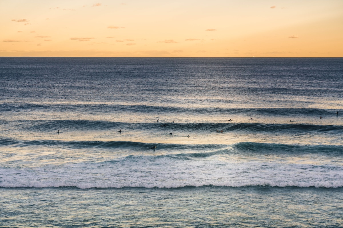 Waves arrive in sets — groups of larger waves separated by lulls of smaller or no waves. A typical set might have three to five waves, followed by a quiet period before the next set arrives.